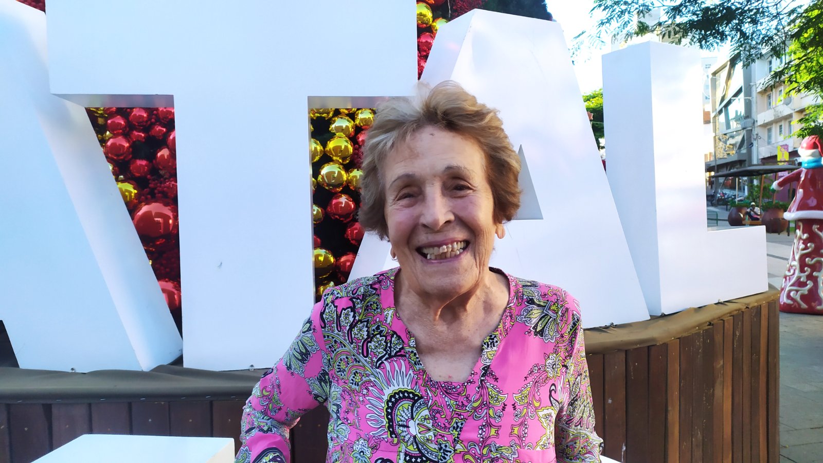 Gladys em um clique curtindo o Natal de Concórdia.Foto: Luís Longhini, Arquivo Rádio Rural 12/12/2023