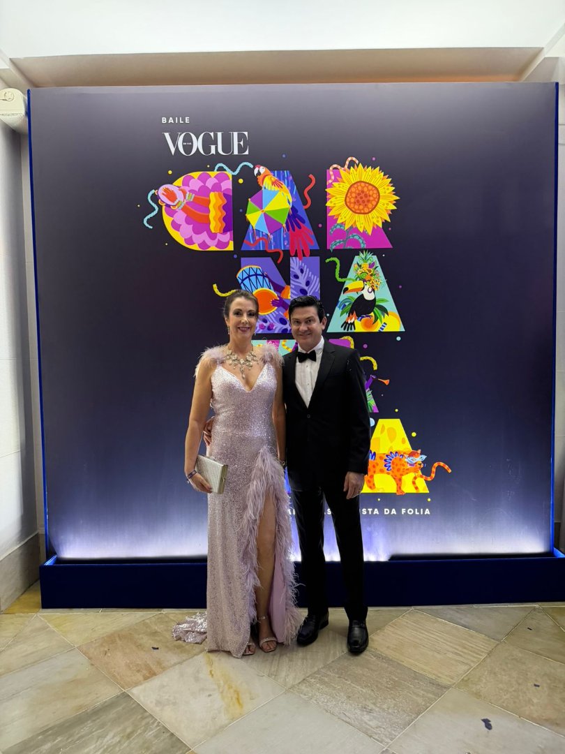 Alexandra Tomazoni e Leonir Pastri em noite de brilho e reconhecimento no Baile da Vogue.Foto: Arquivo Pessoal