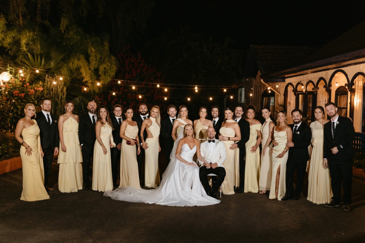 O evento reuniu amigos íntimos e familiares, que acompanharam de perto uma celebração marcante, digna de um verdadeiro conto de fadas, marcada por elegância, sofisticação e riqueza de detalhes.