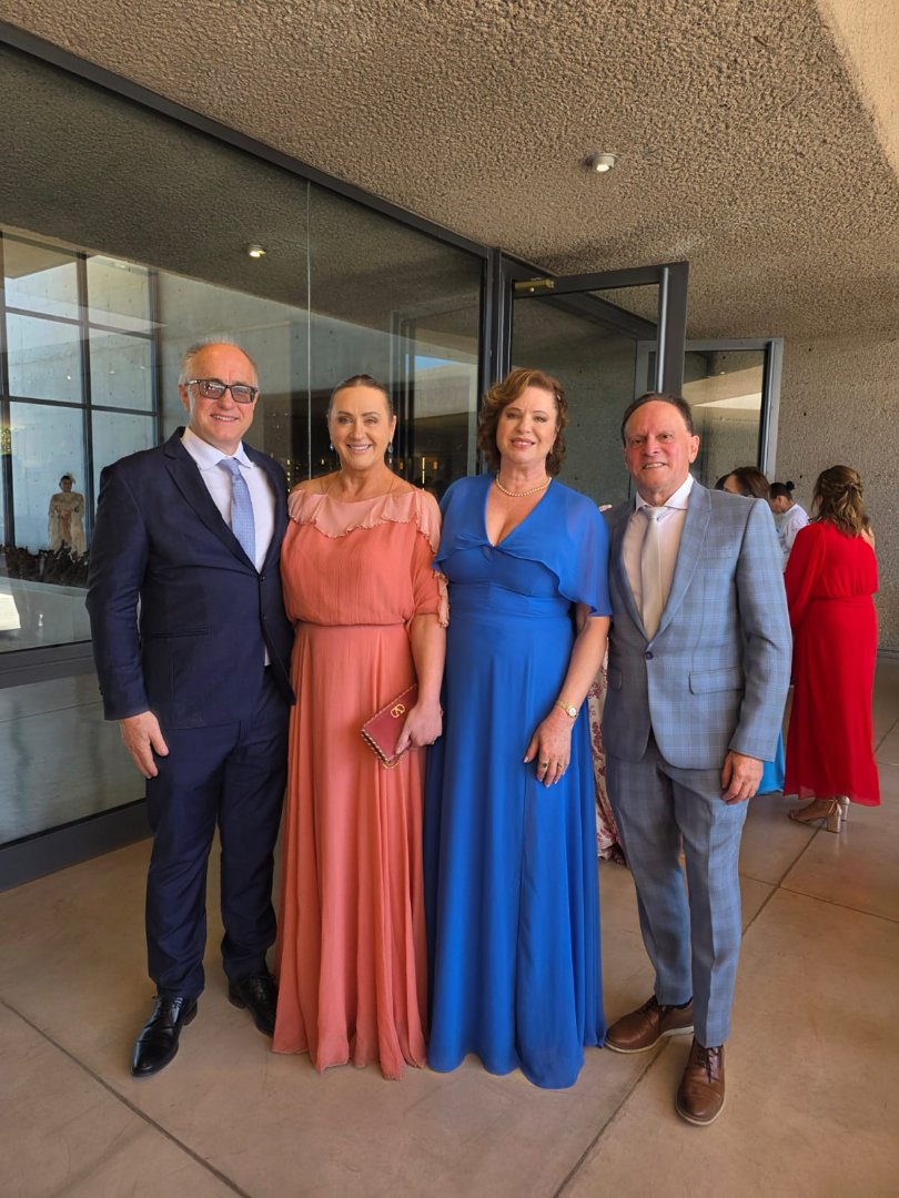 Em um clique que traduz elegância, sintonia e o espírito de parceria, os casais de sucesso, lideraos pelos empresários de Concórdia Jair Guerra e Marlise, ao lado dos ipumirienses João Canfield e Mirian, protagonistas à frente do Grupo Ipumirim, foram destaque em um momento especial que reuniu charme e cumplicidade.