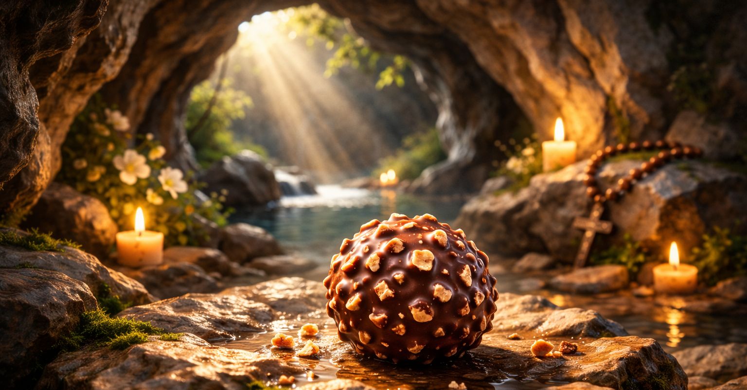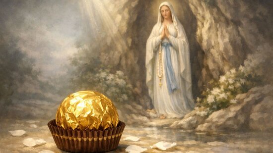 O bombom é uma singela homenagem. Nossa Senhora de Lourdes, porém, transforma vidas no mundo inteiro. Enquanto milhões desembrulham o dourado do Ferrero Rocher em festas e celebrações, milhões também continuam acendendo velas na gruta, segurando terços, confiando dores.