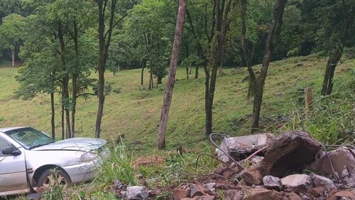 Motorista perde controle de veículo e sai da pista entre Linha São Paulo e Canavese