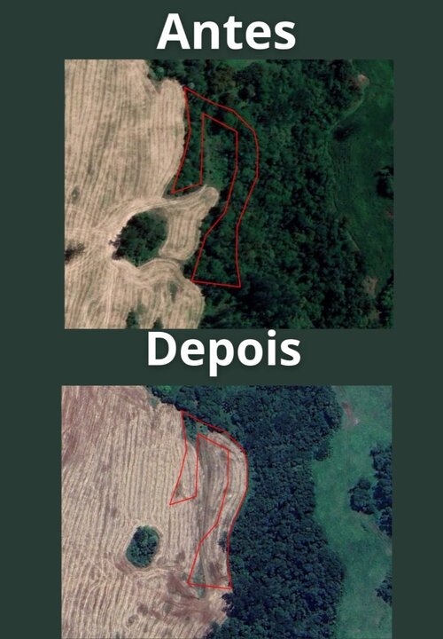 De acordo com informações da corporação, os policiais chegaram ao local após uma denúncia anônima sobre supressão irregular de árvores. Com o auxílio de um drone, foi possível confirmar o desmatamento em uma extensa área de mata.