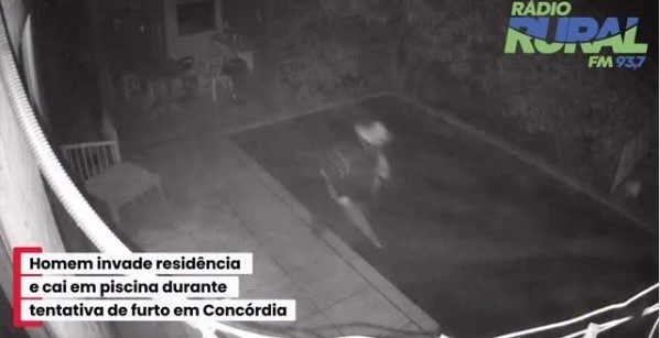 VÍDEO: Homem invade residência e cai em piscina durante tentativa de furto em Concórdia