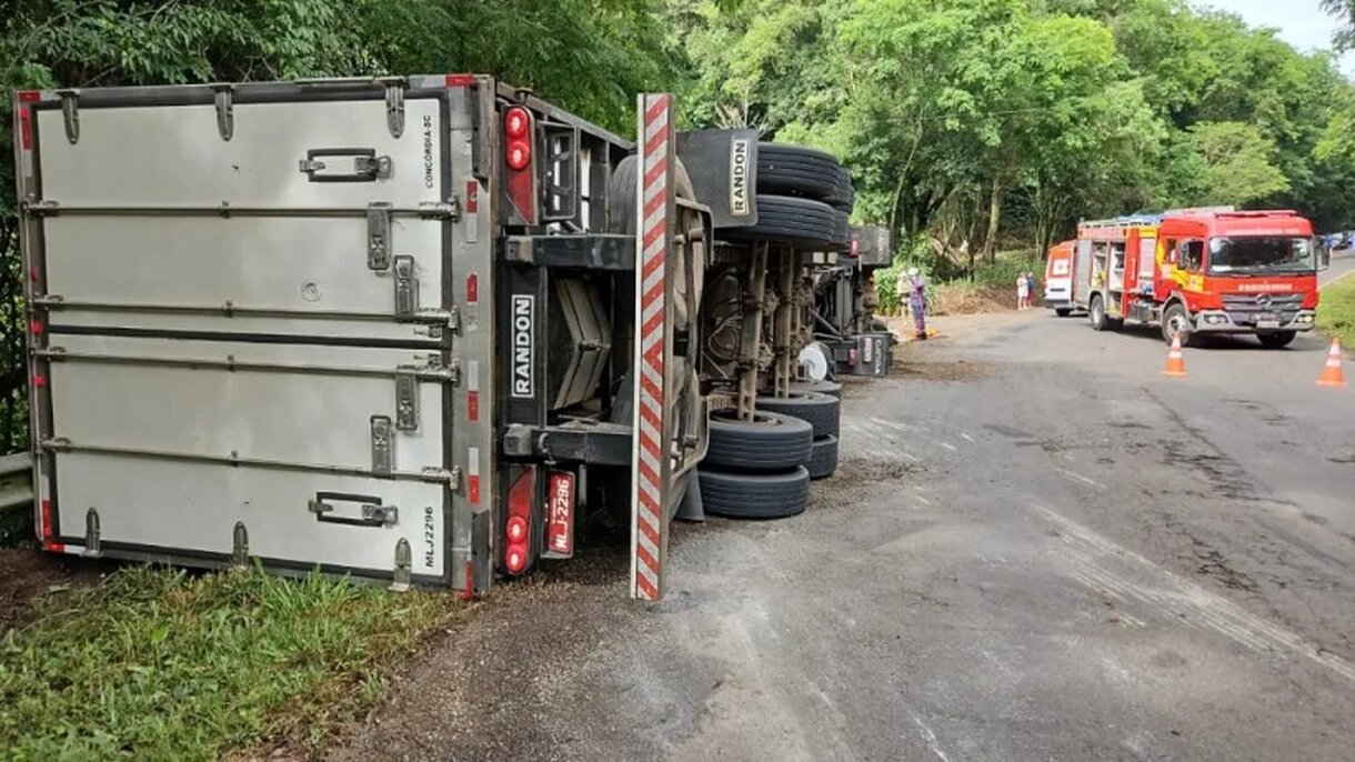 Durante os trabalhos de resgate e atendimento à vítima, o trânsito na rodovia ficou totalmente bloqueado. O acidente envolveu um caminhão Volvo com placas MLN-8191, que tracionava um contêiner com placas MLJ-2296, ambos de Concórdia.