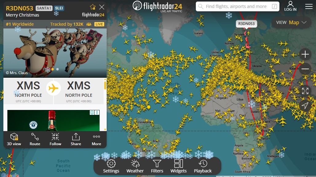 O trenó do Papai Noel surge no FlightRadar24 e encanta internautas pelo mundo