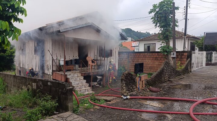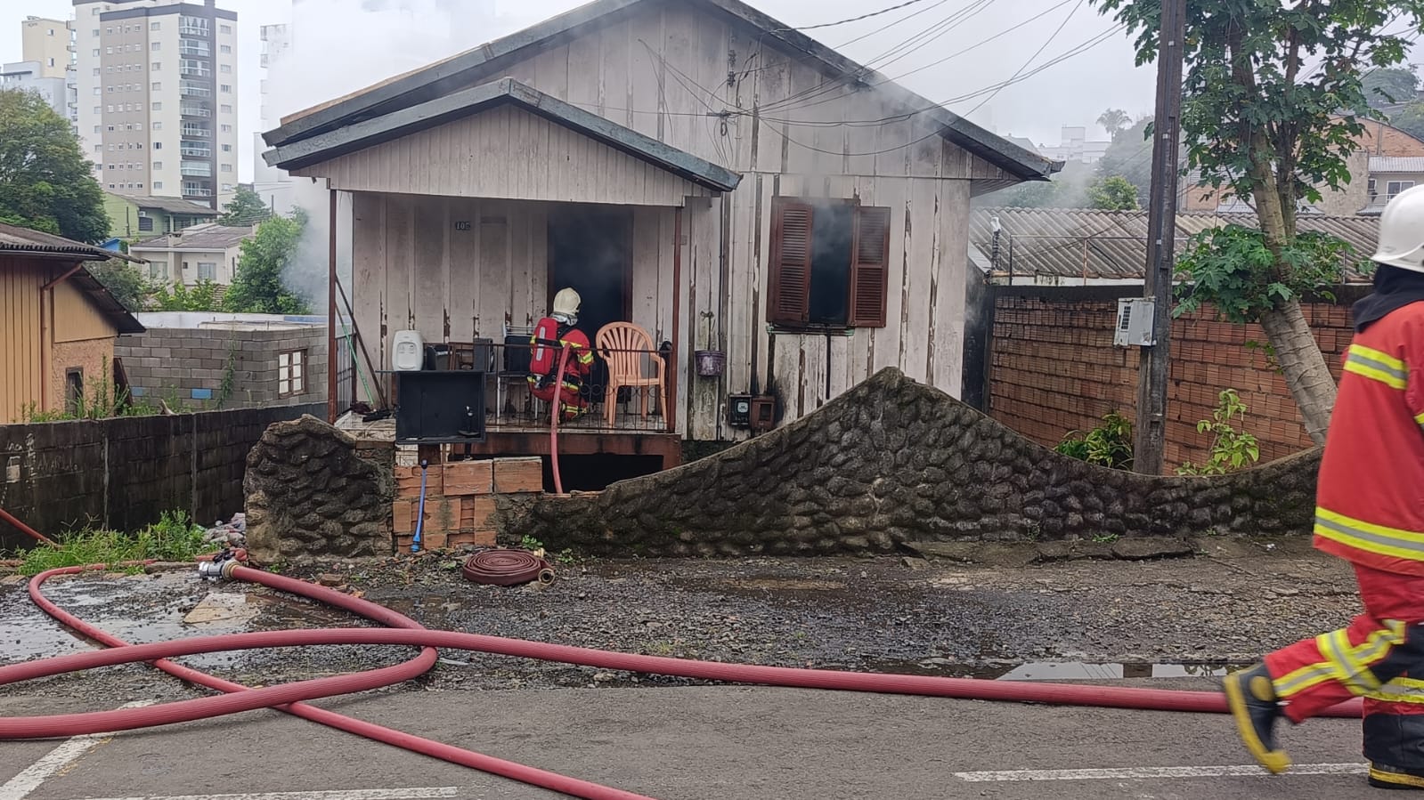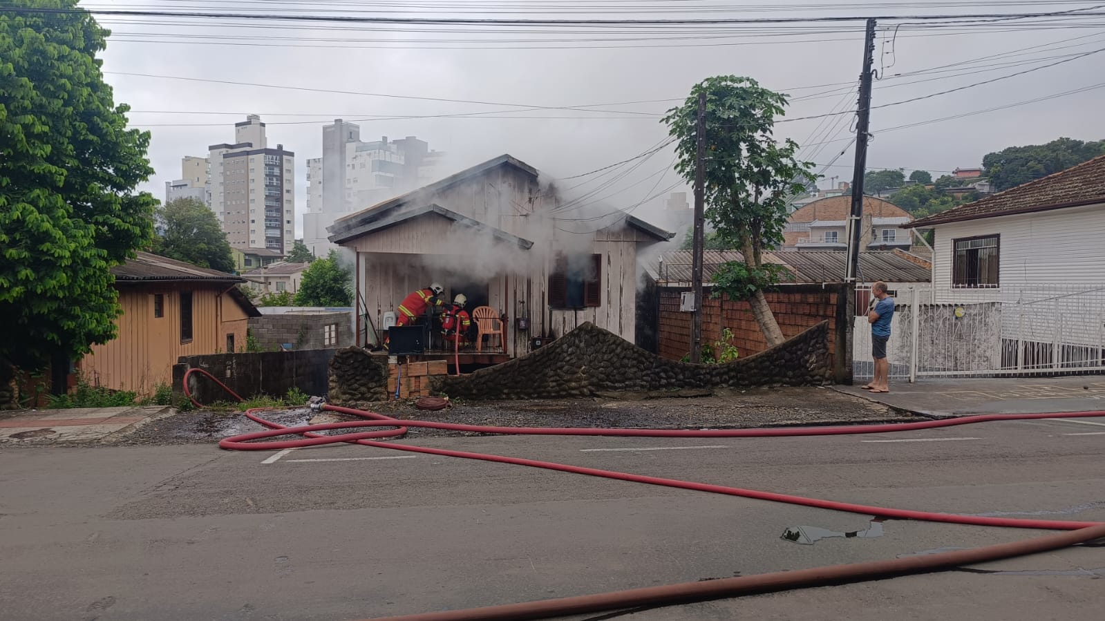 VÍDEO: Incêndio destrói residência na rua Júlio Moritz e deixa uma pessoa ferida