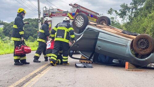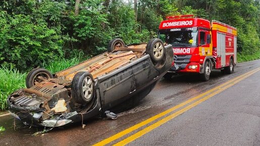 O veiculo ficou com o rodado para cima, obstruindo a pista no sentido Nova Brasília/Suruvi.