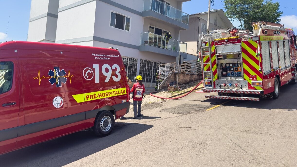 Incêndio em apartamento mobiliza Bombeiros Voluntários em Concórdia