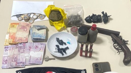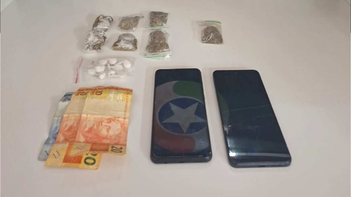 Na busca pessoal, foram localizados com os adolescentes aproximadamente 60,6 gramas de substância análoga à maconha e 5,5 gramas de substância análoga à cocaína, além de dinheiro em espécie e dois aparelhos celulares. Próximo a um bueiro, os policiais encontraram ainda outra porção de maconha, pesando cerca de 5,5 gramas.