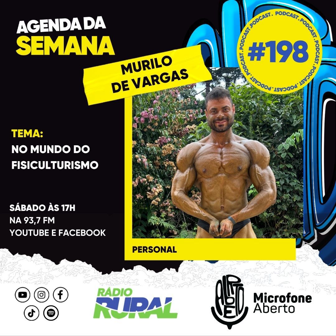 Antes disso, o atleta também será destaque na programação da Rádio Rural. Murilo de Vargas participará ao vivo do Microfone Aberto Podcast da Rádio Rural multiplataforma, neste sábado, dia 14, às 17h, em uma conversa sobre sua trajetória no fisiculturismo, rotina de treinos e os desafios da preparação para as competições.