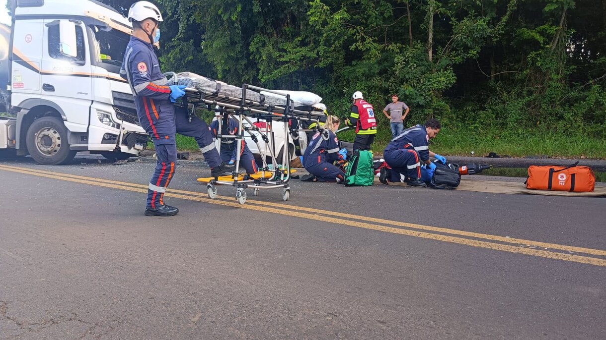 A colisão frontal ocorreu no trecho da rodovia localizado abaixo do trevo de acesso ao município de Peritiba. No carro também estava o motorista, um homem de 51 anos, que não resistiu aos ferimentos e morreu ainda no local do acidente.