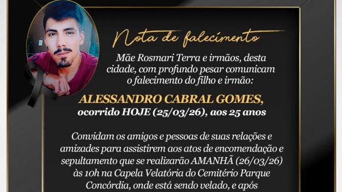 O velório de Alessandro ocorre na Capela Velatória do Cemitério Parque Concórdia. O sepultamento está marcado para esta quinta-feira (26), às 10h, no cemitério local. Familiares e amigos prestam as últimas homenagens ao jovem, cuja morte gerou forte comoção na comunidade concordiense.