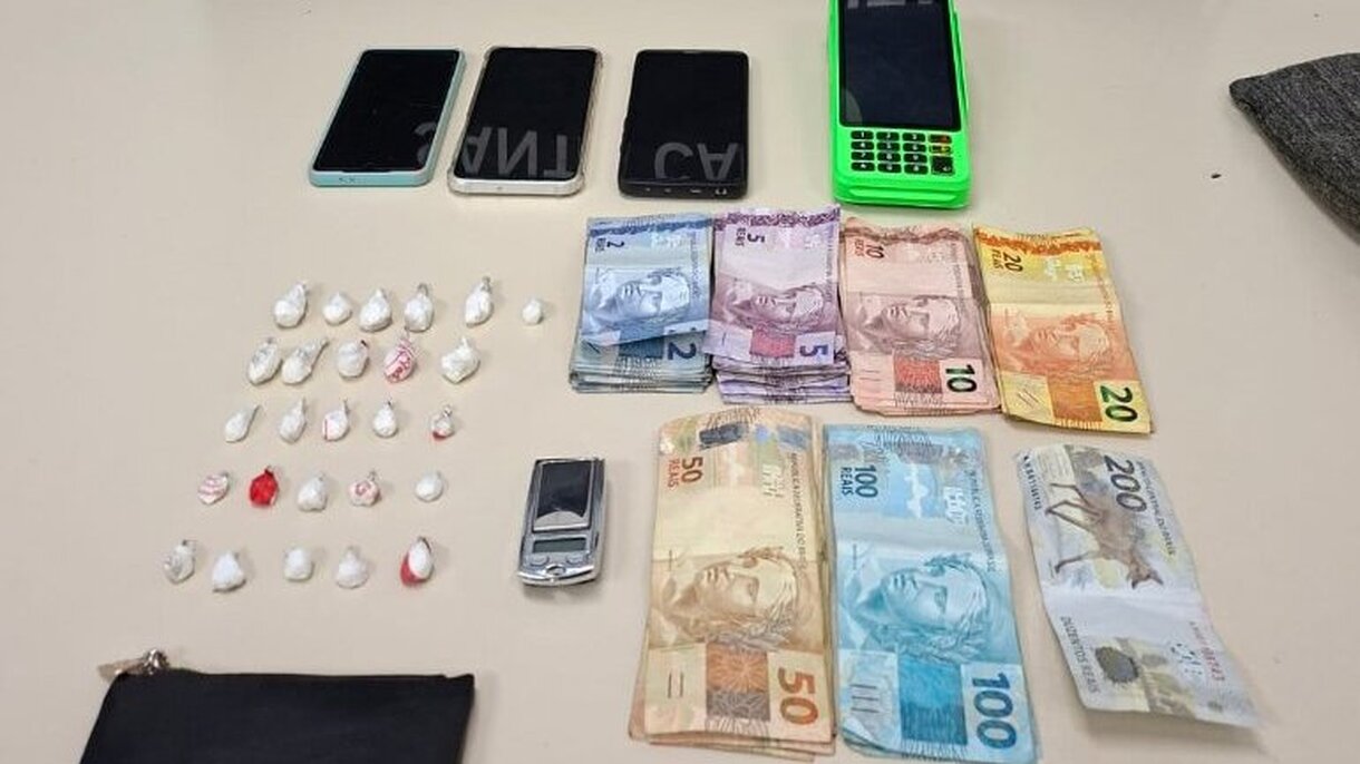 Na sequência, as guarnições se deslocaram até a residência. Ao perceber a presença policial, o suspeito tentou fugir pelos fundos e dispensou uma pochete contendo diversas porções de cocaína já fracionadas para venda. Ao todo, foram apreendidas 26 porções da substância, totalizando 19,4 gramas, além de dinheiro em espécie, aparelhos celulares, uma balança de precisão e uma máquina de cartão.