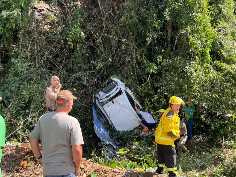 No carro estavam duas pessoas, sendo o motorista e uma mulher. Ambos foram encontrados conscientes e apresentavam escoriações, sendo prontamente atendidos pelas equipes de socorro.