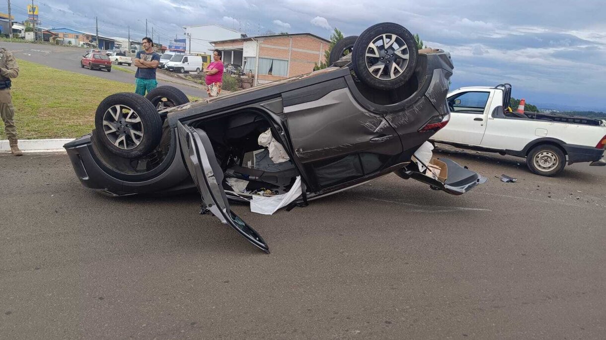 De acordo com as informações apuradas no local, o outro automóvel envolvido possui placas de Concórdia. Com o impacto, dois idosos que estavam no veículo capotado sofreram ferimentos leves praticamente sem gravidade. Apesar do susto, que foi maior do que as lesões, ambos estavam conscientes e sendo avaliados pelos bombeiros no local.