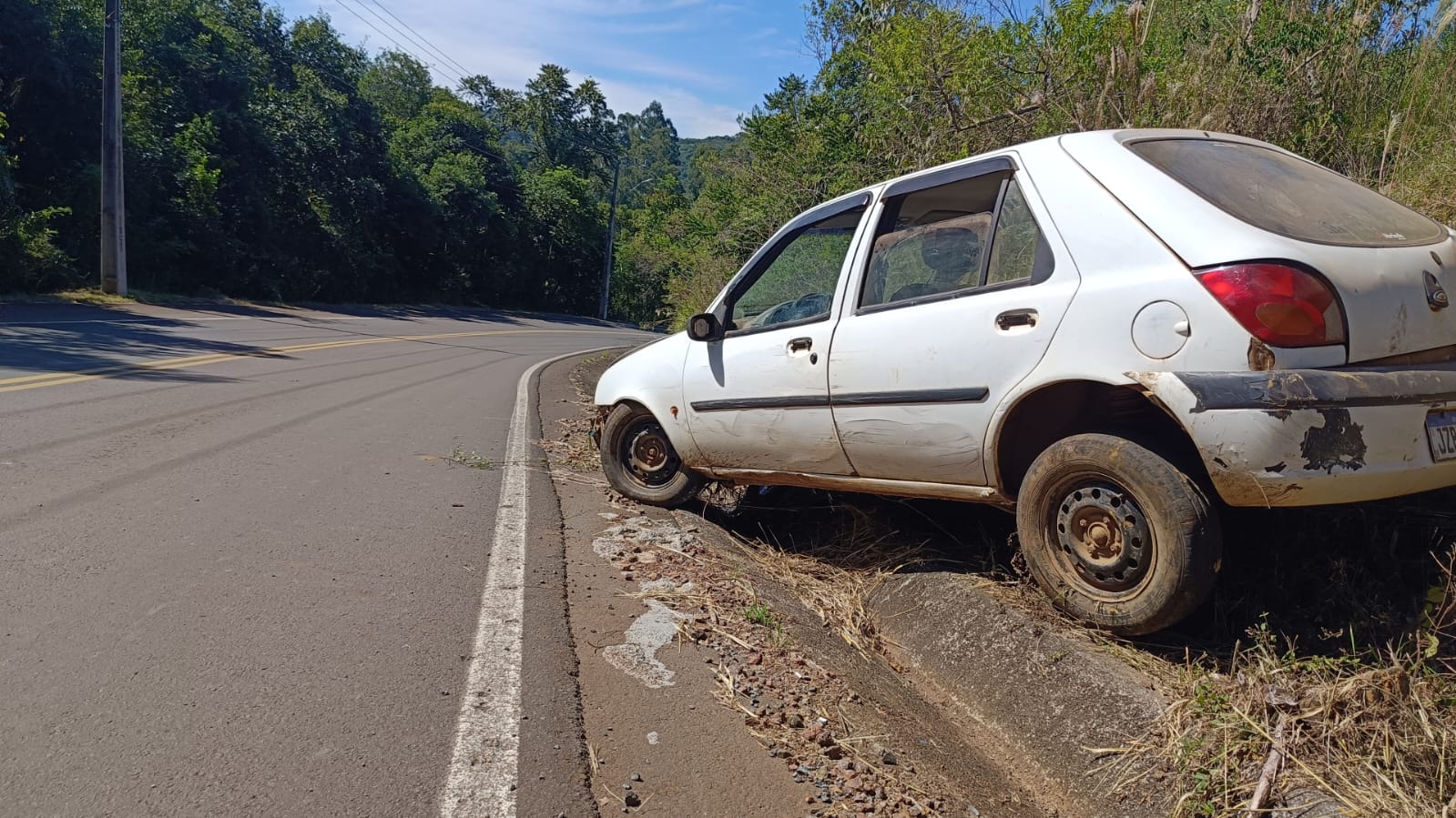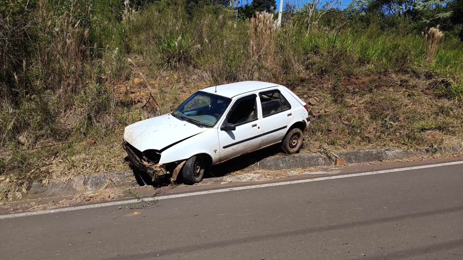 Para evitar um acidente mais grave, jogou o Fiesta contra o barranco. O veículo ficou fora da rodovia e não atrapalhava o trânsito, porém sofreu danos materiais de elevada monta.