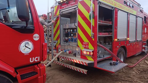 O combate ao incêndio contou com a atuação de sete bombeiros e o uso de dois caminhões, além do apoio de funcionários da própria empresa. As equipes concentraram esforços no controle do fogo subterrâneo, utilizando grande quantidade de água no trabalho de rescaldo.
