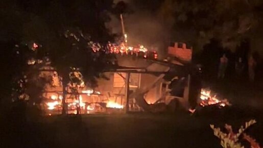 Casa de madeira é totalmente consumida pelo fogo no interior de Itá