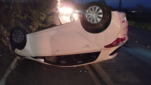 Com o impacto, o HB20 capotou e ficou às margens da rodovia. No interior do veículo, uma mulher foi atendida pelos Bombeiros Voluntários de Concórdia e encaminhada para atendimento médico. Apesar do susto, o estado de saúde dela foi considerado estável, embora estivesse bastante abalada.