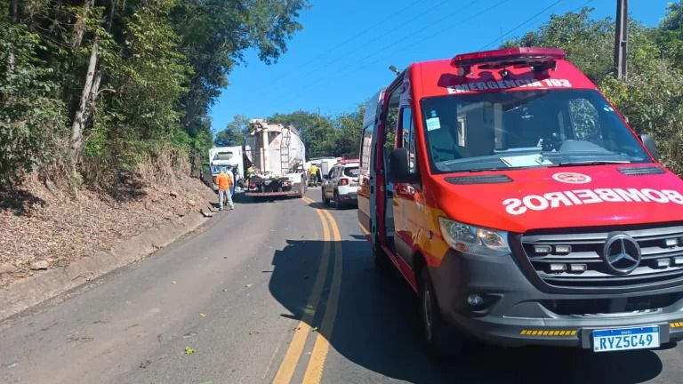Grave acidente envolve dois caminhões na SC-155, em Xavantina